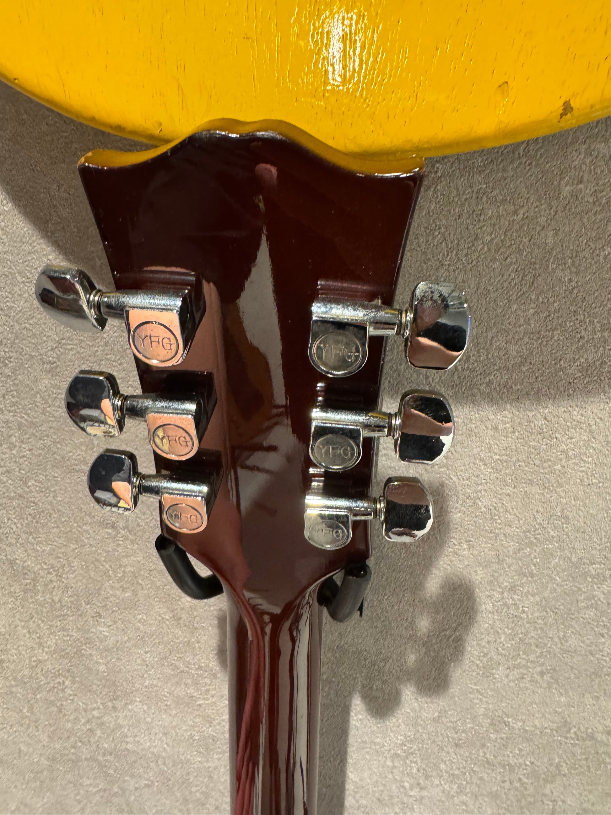 こちらはただのeg480ではなく eg480R customでございますので 鳴りが段違いに良いです。 弦高 6弦約 mm 1弦約 mm 12フレット 心を込めて弦高調整済みでございます。 ブリッジ部塗装傷、ノブ内部に傷あります。が、 使用には全く問題無いレベルです。 made in japan。素晴らしい音色です。 グレコ・ブランドの初期レス・ポール・スタンダード・モデル”EG480R custom 本機は既に50年弱が経過した国産モデルとしては、非常に綺麗な状態を留めた、 エクセレント・クリーン・コンディション! このコンディションはなかなか入手困難でしょう ホワイトシカモアトップ パンケーキ構造のボディ メイプル3ピースネック セミホローボディ エボニー指板 70年代のギブソンレスポールを意識した仕様かつグレコオリジナルの